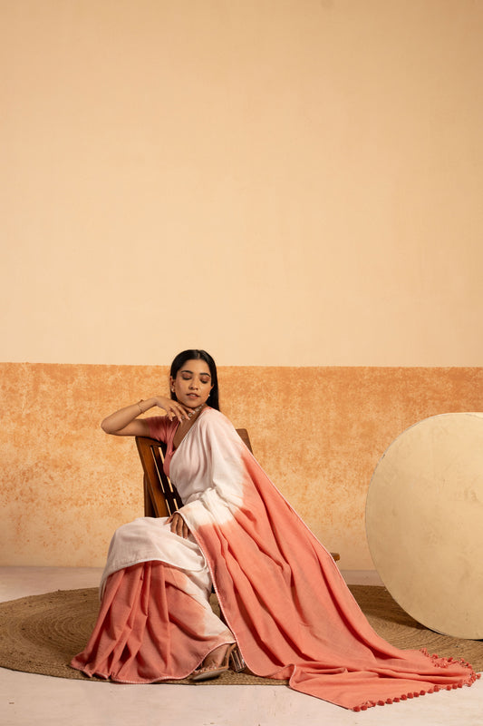 The fabric is light, soft, and has such a graceful fall. I especially love the delicate pom-pom detailing on the pallu — it adds the perfect touch of charm. Great quality and beautifully packaged too. Totally worth it!